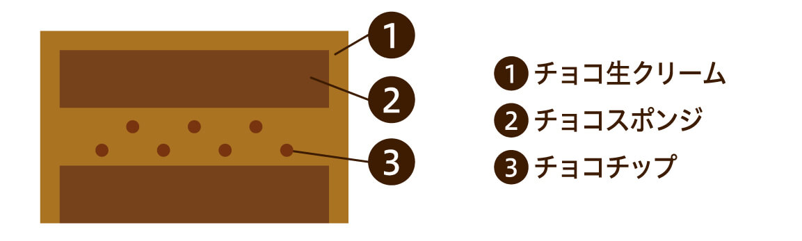 ふわふわのチョコスポンジに優しいカカオの香るチョコレートクリームをたっぷりサンドしました。