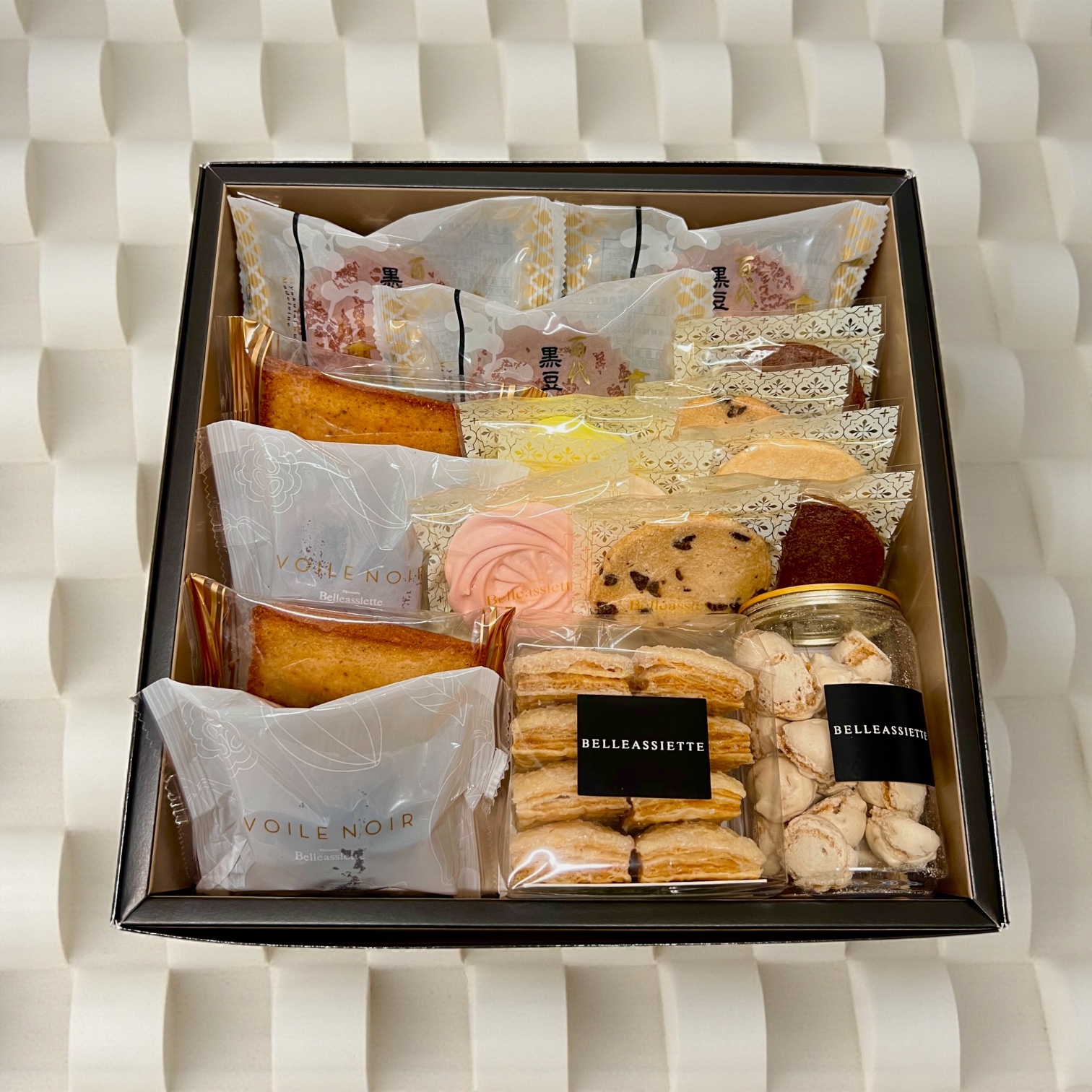 草加賛菓【soukasanka】大 ベルアシェット特製の焼菓子詰め合わせ(季節によって中身が異なります) 特定原材料 卵、乳、小麦 百代黒豆マドレーヌ 3個/フォンダンショコラ 2個/フィナンシェ 2個/クッキー 5枚/ムラングローズ 3枚/UMAPAI 1個/ムラングキャラメル 1缶/計17個4440円 ※全て税込価格です