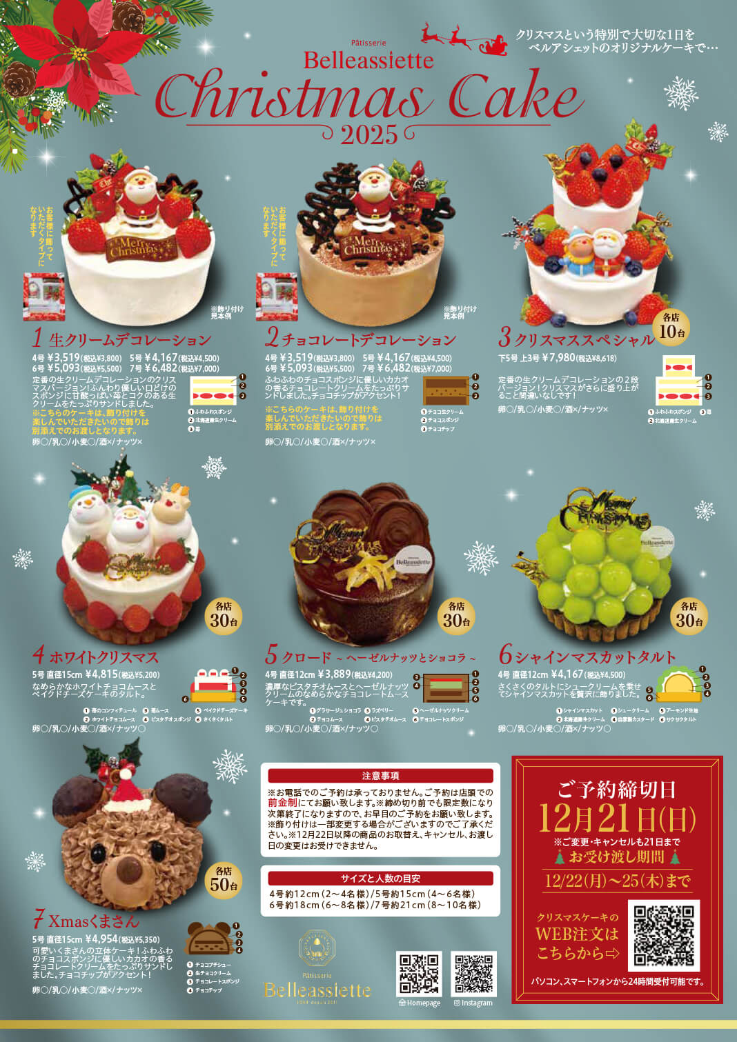 ベルアシェットのクリスマスケーキのご予約が、