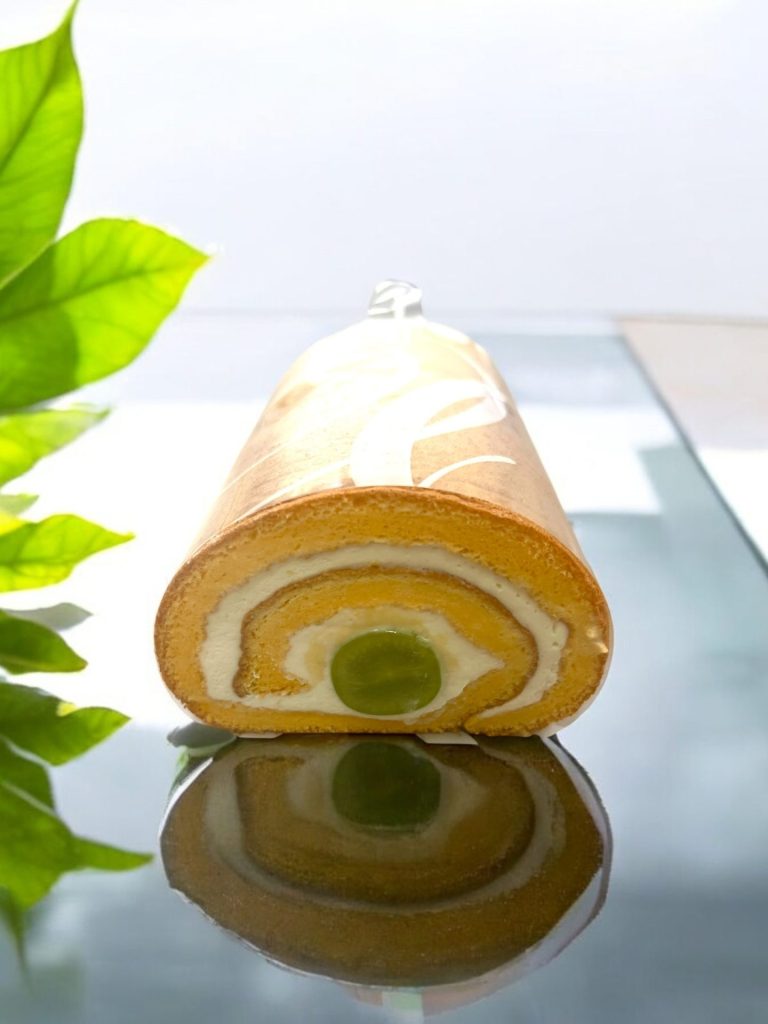 当店の人気商品のベルロールに旬のシャインマスカットを丸ごとサンドした贅沢な一品